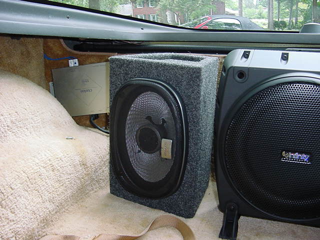 Clarion Sirius Satellite Tuner, and Kenwood Excellon speakers Location in those boxes was temporary. Will be installing in the rear where the clarion unit is. Had them there until rebuild. .